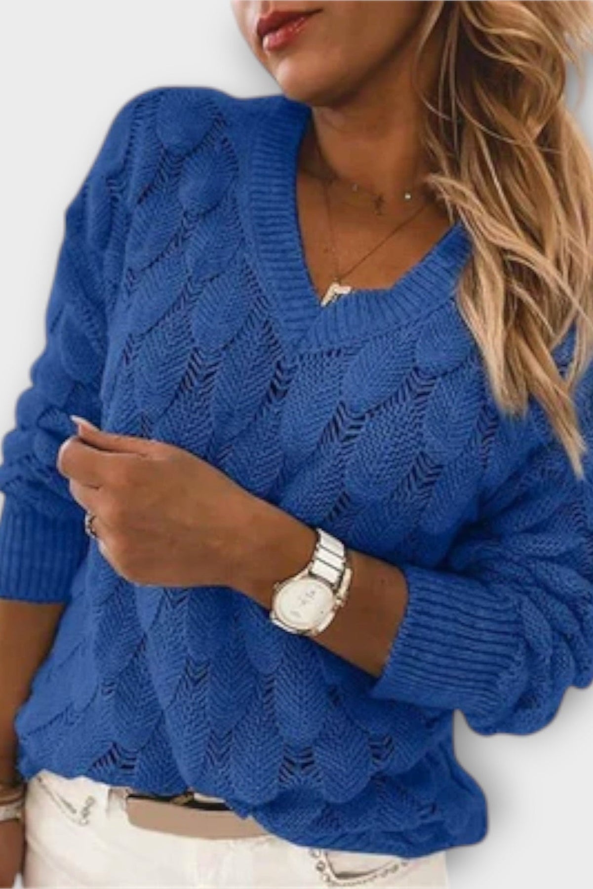 Sweter Noemier z dekoltem w serek łączy elegancję z ponadczasowym komfortem. Dzięki wygodnemu krojowi, ten sweter to idealne połączenie stylu i wygody, sprawdzające się w każdej sytuacji – od codziennego noszenia, przez biuro, aż po relaksujące weekendowe wyjazdy.