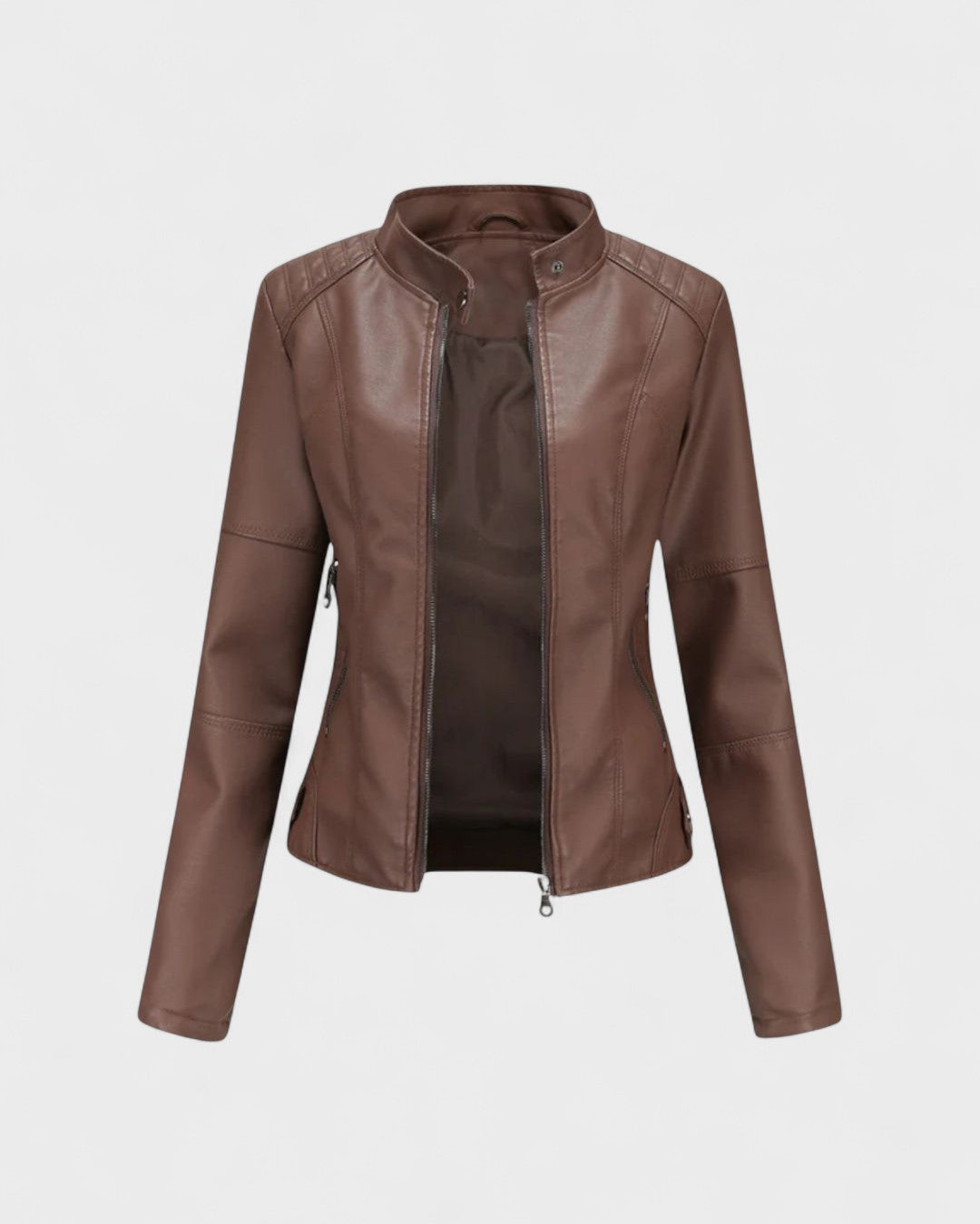 Kurtka skórzana Sophia Rento łączy klasyczną elegancję z nowoczesnym komfortem. Miękka, wysokiej jakości skóra zapewnia luksusowe odczucie, a minimalistyczny design sprawia, że jest idealnym wyborem zarówno na co dzień, jak i na bardziej uroczyste okazje.