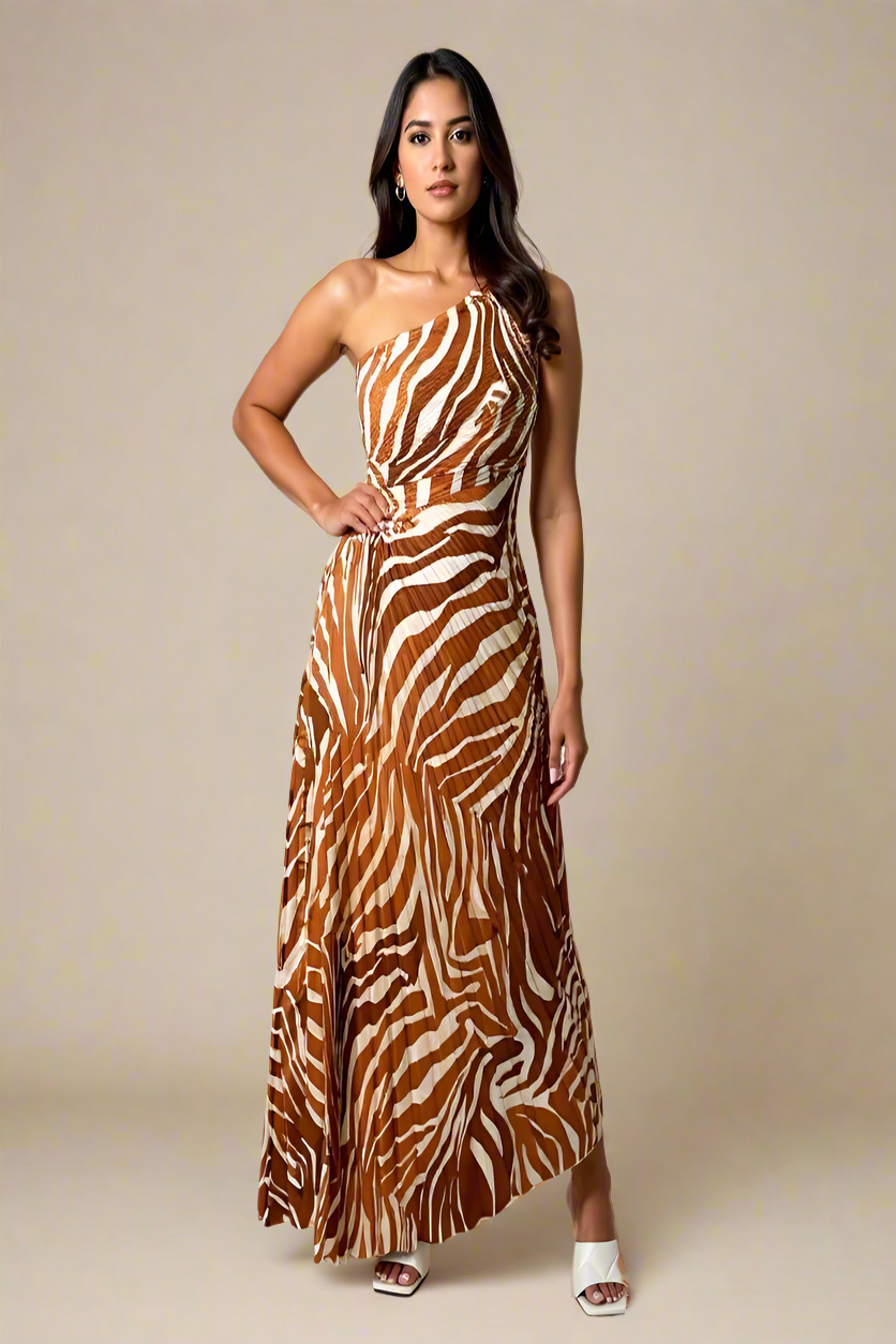 Alva Kjole | Abito plissettato a spalla unica con motivo zebra