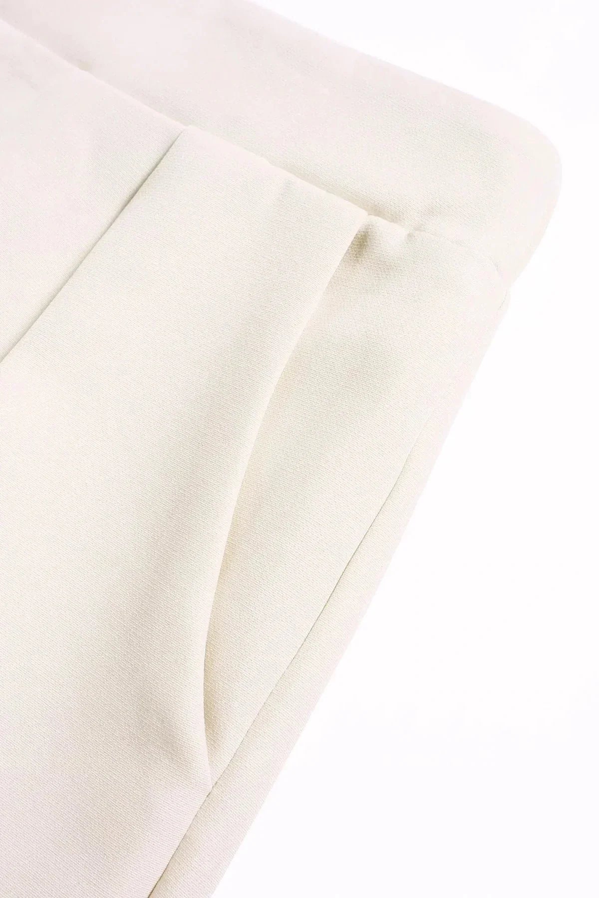 Bellagio-sako spojuje nadčasové šití a moderní sebevědomí. Sada obsahuje pevnou, bezramennou vestu s ozdobnými knoflíky a široké kalhoty – tyto prvky společně vytvářejí štíhlou a lichotivou siluetu, která působí bezstarostně elegantně. Krémová barva zvýrazňuje všestrannost obleku, což z něj činí nezbytný kousek pro ženu, která chce vypadat silně a sofistikovaně v jakékoli situaci.