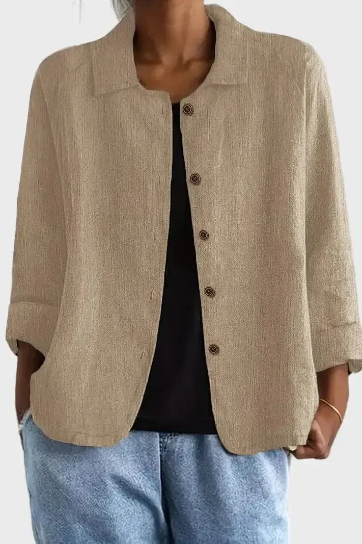 Stylowy lniany płaszcz w ciepłym różowym odcieniu łączy wygodę i styl, idealny na codzienne i eleganckie okazje. Dzięki lekkiej tkaninie i luźnemu krojowi, jest to doskonały element na każdą porę roku.