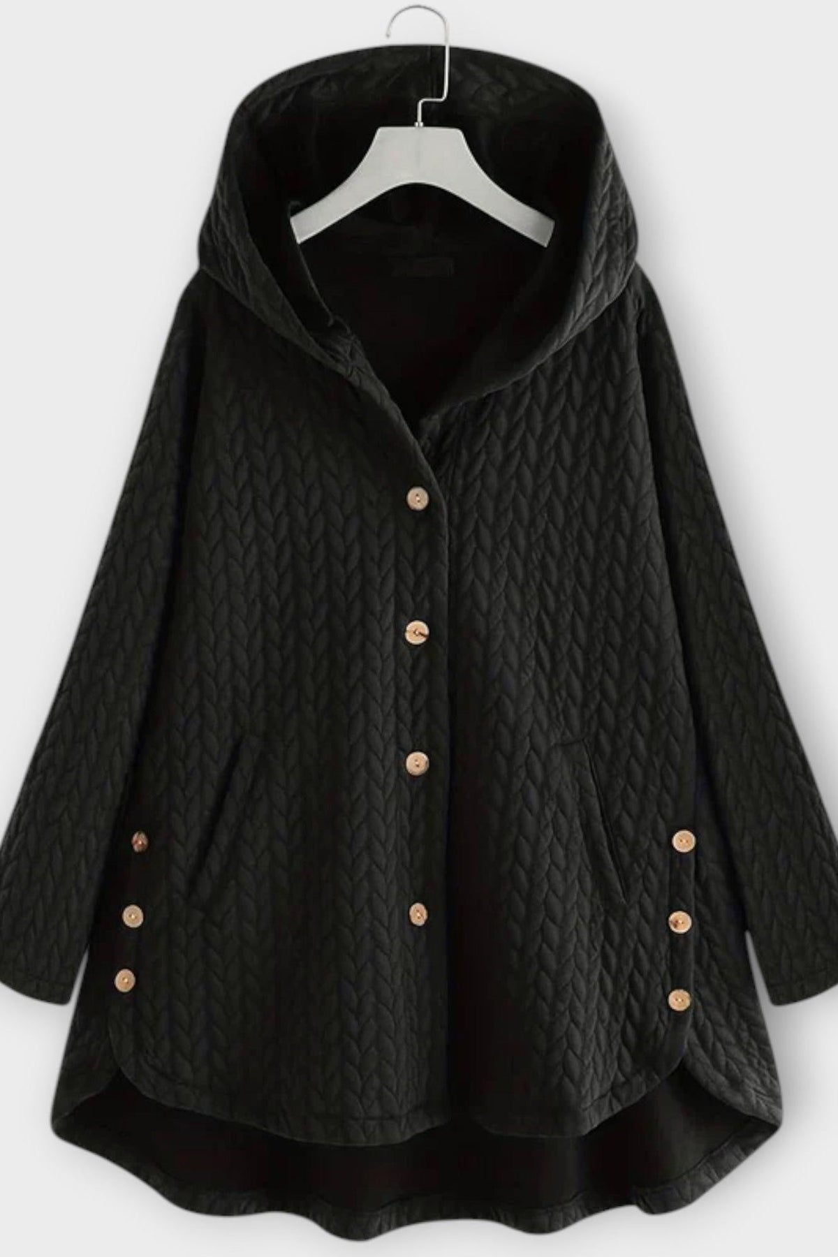 Klasický knoflíkový design – nadčasový detail, který působí elegantně a upraveně.
