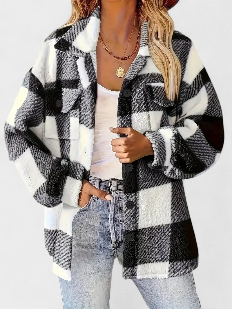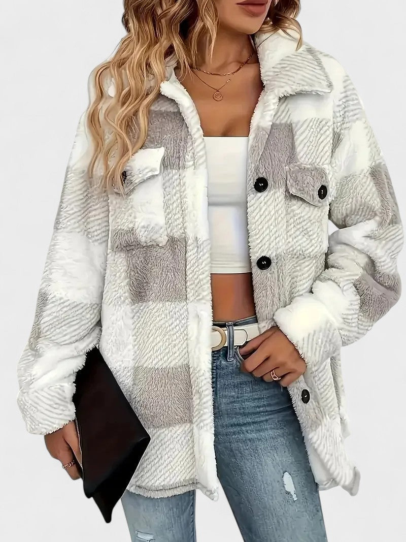 Rosa | Giacca in pile a quadri elegante