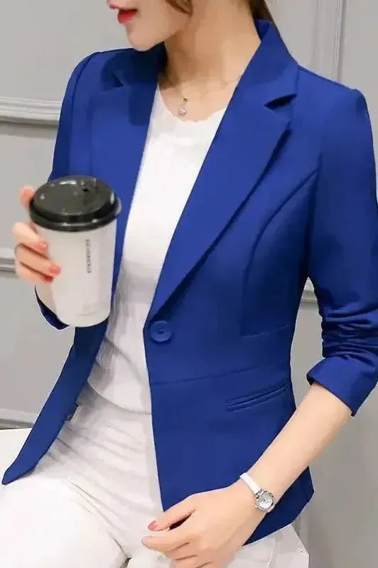 Toto klasické sako nabízí přizpůsobený střih, pevná ramena a lichotivou siluetu. Jednoduché zapínání vpředu vytváří upravený a elegantní vzhled, zatímco dekorativní manžety a ostré límce dodávají nadčasový půvab. Kombinujte s džíny nebo přes halenku – to je jistá volba pro okamžitou stylovost a sofistikovanost.