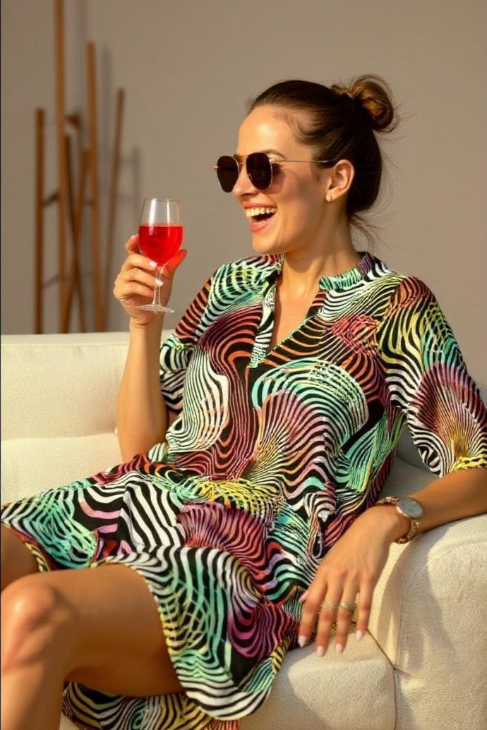 L'abito Vigga combina colori vivaci con una vestibilità lusinghiera.
